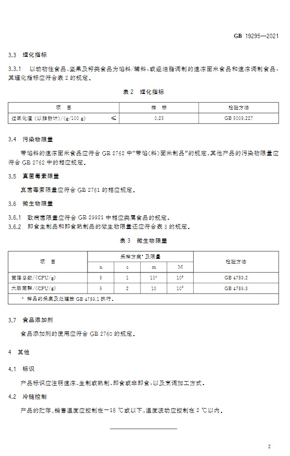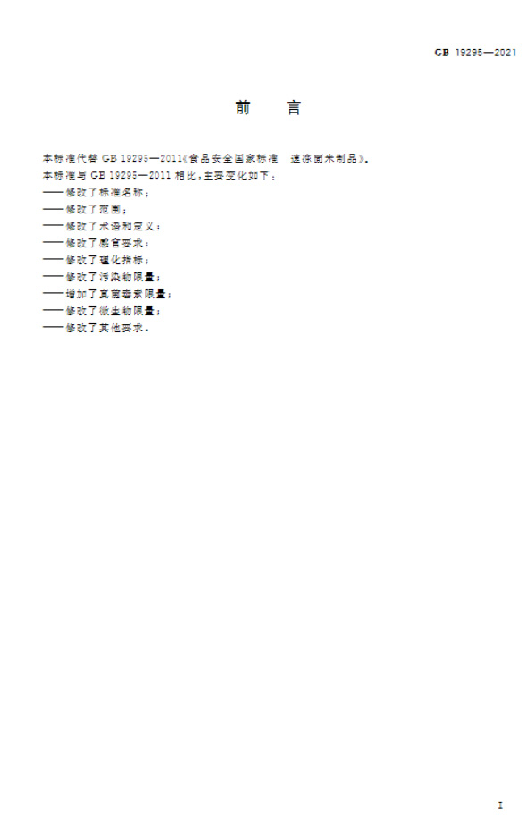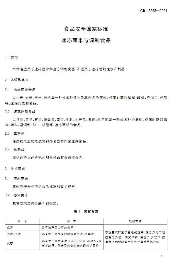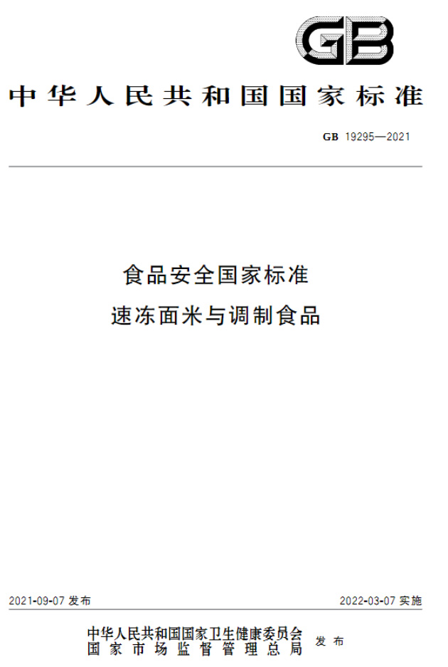 GB 19295-2021食品安全國家標準 速凍面米與調制食品